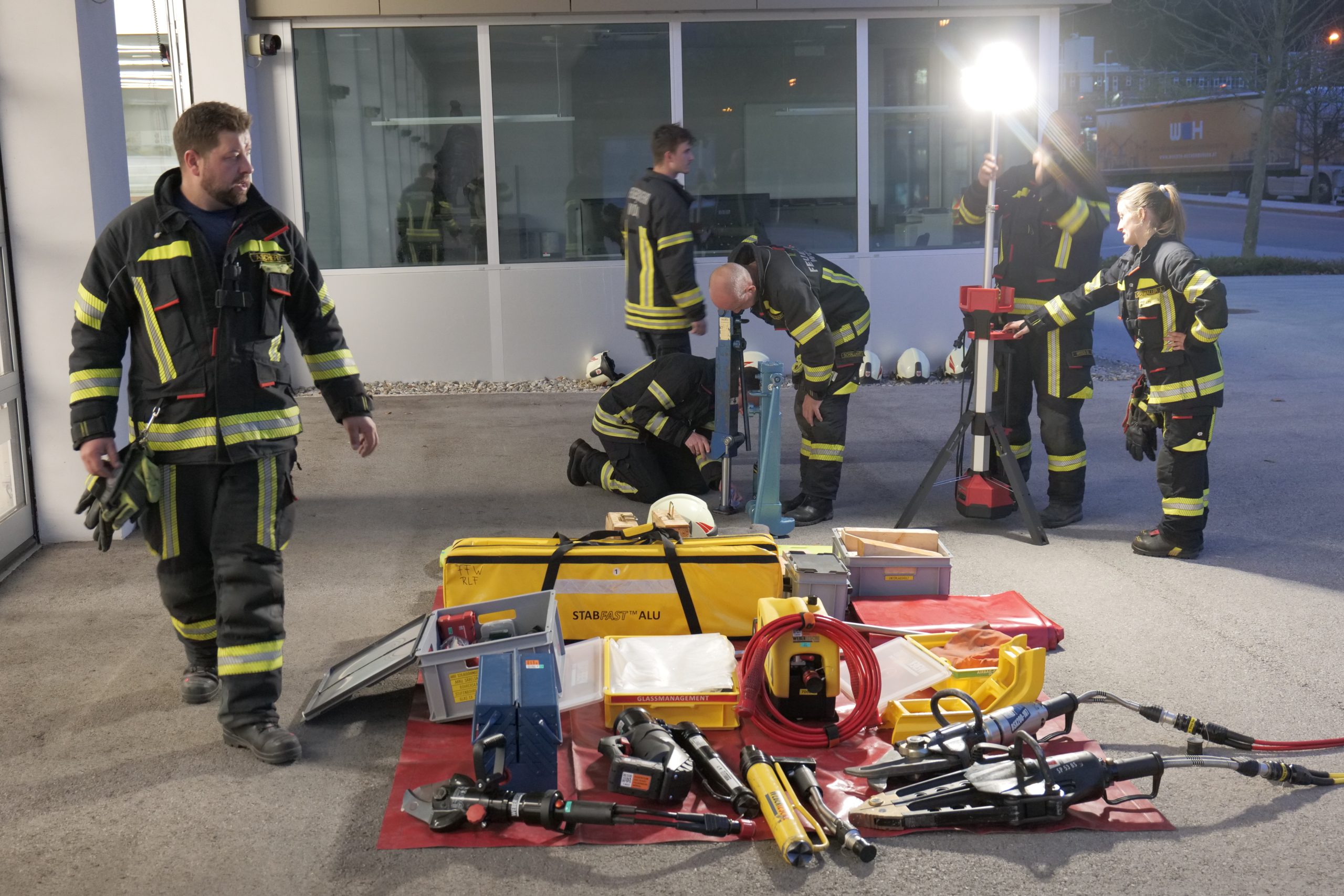 Wie gewohnt stand auch dieses Mal zu Beginn der Übungssaison die Fahrzeugkunde auf dem Programm. Dementsprechend wurden sämtliche Gerätschaften getestet und die Handhabung diverser Spezialgeräte beübt.